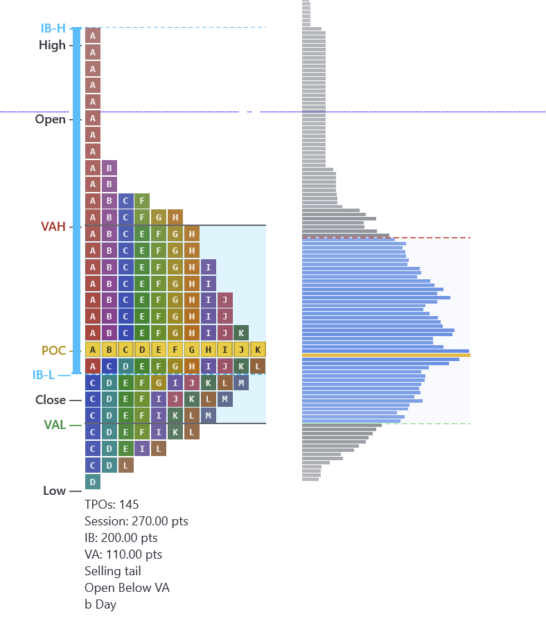 The shape of a completed session profile tells you a story about what happened that day. Was it balanced? Did one side dominate? Did the market reprice to a new level? You can read all of this at a glance from the shape.