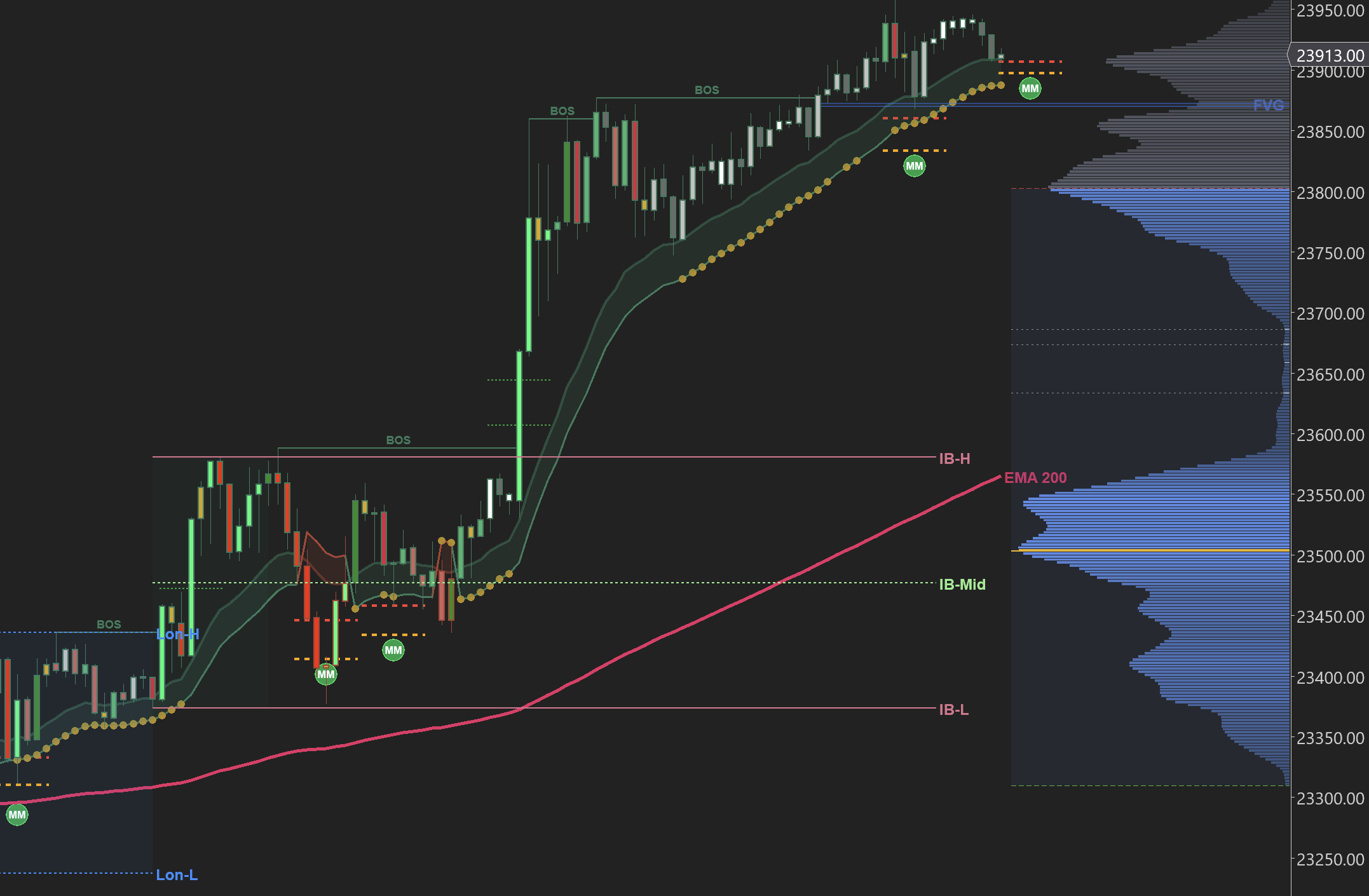 - If the IB was narrow, expect a larger extension — narrow IBs produce the best trend days. A narrow IB that breaks one side often reaches 1.5x to 2x