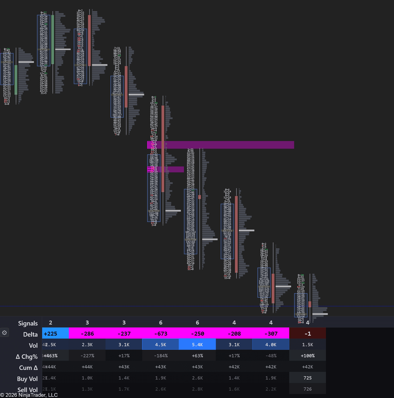 The only NinjaTrader 8 indicator that combines Volume Profile, Cumulative Delta, Delta Bars, and a full Footprint chart into one unified tool. See the complete order flow picture without stacking multiple paid indicators.