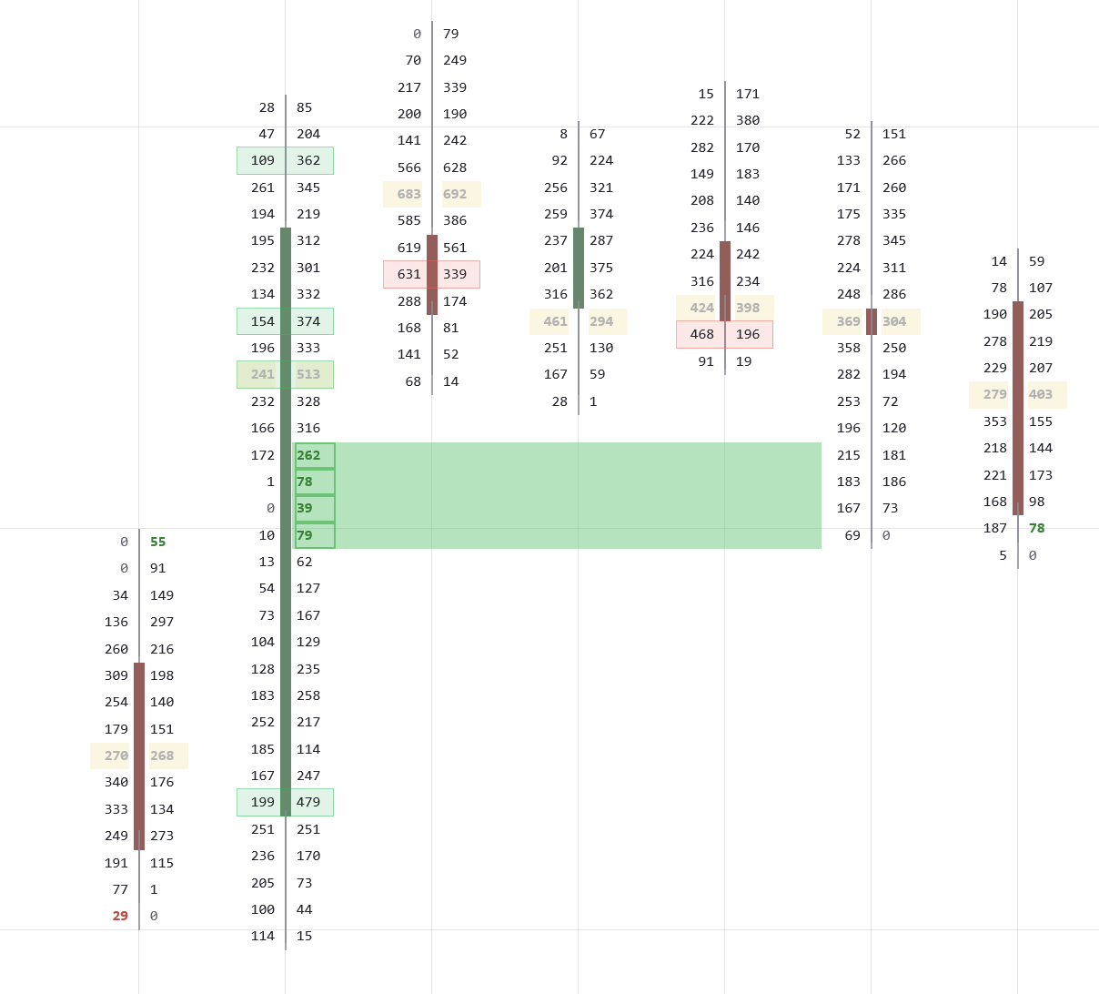 - Imbalance zones where one side overwhelmed the other 3:1+